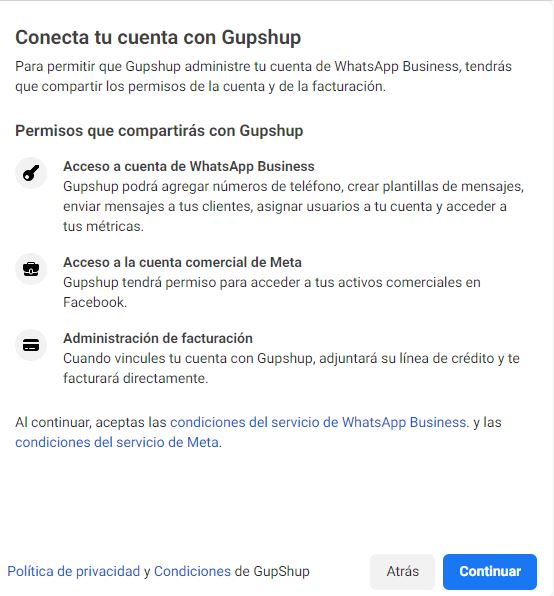 Aviso sobre los permisos que compartiras con Gupshup , nuestro BSP